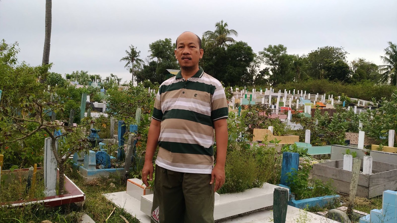 Seketika ingatan saya ke tanah air, waduh sangat kontras dan bertolak belakang antara kuburan yg ada di Indonesia dgn yg di Arab Saudi. Segala macam model ada di kuburan kita. Batu nisan berhias, pingir dibeton, dicor, dikeramik, dipagari, diberi kubah, ditulisi segala macam. Sepertinya di kuburan kita sdh dikapling, ditandai, terkesan “pamer”dan semrawut. Banyak kuburan penuh tdk dipakai lagi, yg ada terus diperluas dan terus bertambah meskipun sangat sulit menemukan lokasi pekuburan yg layak. Seandainya semua bahan dan keramik dikuburan kita dikumpul mungkin cukup utk membangun beberapa masjid yg megah.