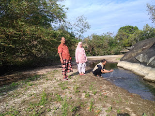 Saya bersama Pembina Pesantren lainnya menuju bendungan yang terletak di perbatasan Pesantren. Direncakan untuk mengambil air dari sungai. Ketika sampai di bawah saya kaget, ternyata tdk ada lagi air yang mengalir seperti biasanya, sungai dan bendungan pun ternyata ikut mengering, yang tersisa sedikit genangan air. Selama puluhan tahun saya tinggal di Kecamatan Tanete Riaja Barru, baru kali ini saya melihat sungai dan bendungan ini mengering. Kami coba menggali di tepi sungai sedalam dua meter, Alhamdulillah ada airnya. Jernih. Sekali lagi syukur alhamdulilla yaa Allah masih ada air yang tersisa di dasar sungai yg mongering ini.